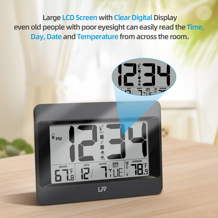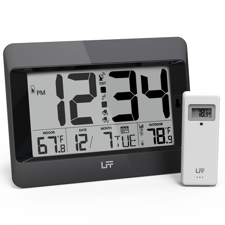 LFF digital clock contains 8 time zones(EST, CST, MST, PST, AKT, HST, AST, and NST), which can synchronize atomic clocks automatically. We can also set the time and date manually if the WWVB signal is weak where we are.