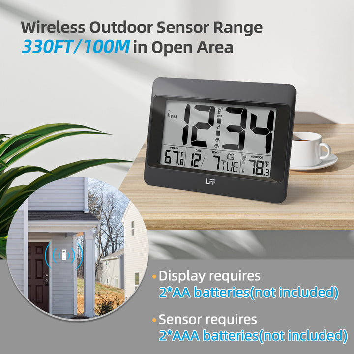 The Wireless outdoor sensor (included) transmits the outdoor temperature to the Atomic Wall Clock. The maximum transmission range is 328 ft in open air, not including walls or floors. The wireless technology means no wire installation is necessary.Support up to 3 sensors, the package includes only one sensor. Search B0B8LYWVGQ to purchase additional sensors.